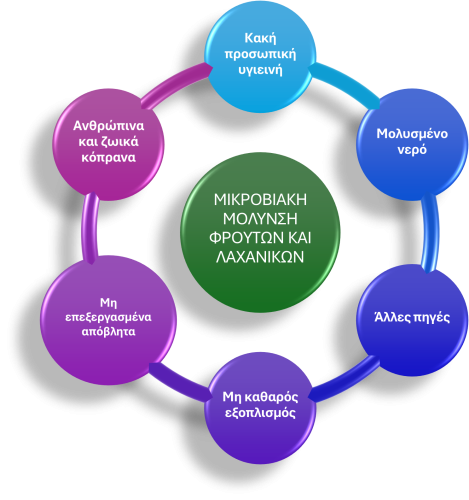 Η κατανάλωση φρούτων και λαχανικών που έχουν μολυνθεί με επικίνδυνους μικροοργανισμούς αποτελεί πηγή τροφιμογενών ασθενειών. Η πρόληψη της μικροβιακής μόλυνσης είναι ο καλύτερος τρόπος για την πρόληψη των ασθενειών και τη βελτίωση της υγείας.